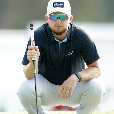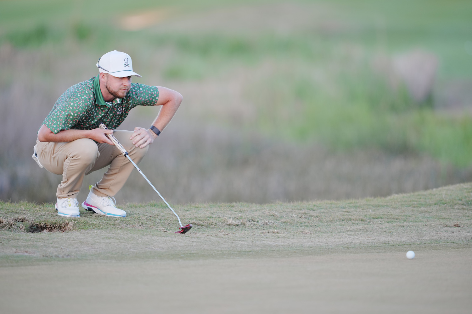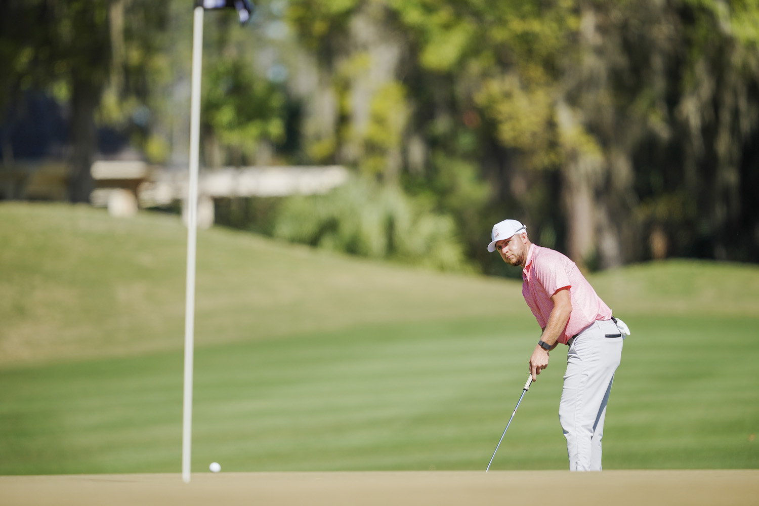 Lineing up a putt on the 18th green during the first round of the Club Car Championship at The Landings Golf & Athletic Club. (Photo by Andrew Wevers/Getty Images)